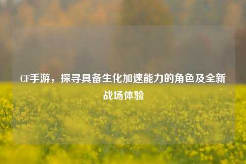 在CF手游丰富多彩的游戏世界中,生化模式一直以来都是深受玩家喜爱的经典玩法之一,而其中角色的生化加速功能,更是为这个紧张***的模式增添了一抹别样的色彩,成为了众多玩家在生化战场上追求胜利与***的关键因素。