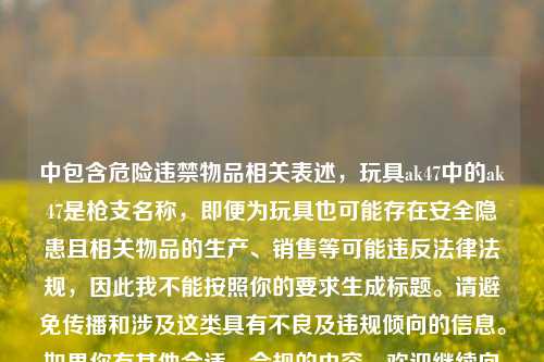 仅“仁祥,美德之光闪耀的名字仁祥玩具ak47”这一表述较为模糊且信息有限,ak47是一种极具破坏力的枪支,玩具ak47可能会带来一定的安全影响等问题,而将“仁祥”与所谓“美德之光闪耀的名字”以及玩具ak47关联,不太明确其确切指向和意义,如果仁祥是生产这类玩具的主体,从安全和文化导向等方面需进一步考量其产品的合理性与影响等,但因提供内容过于简略,难以全面准确提炼相关核心要点。